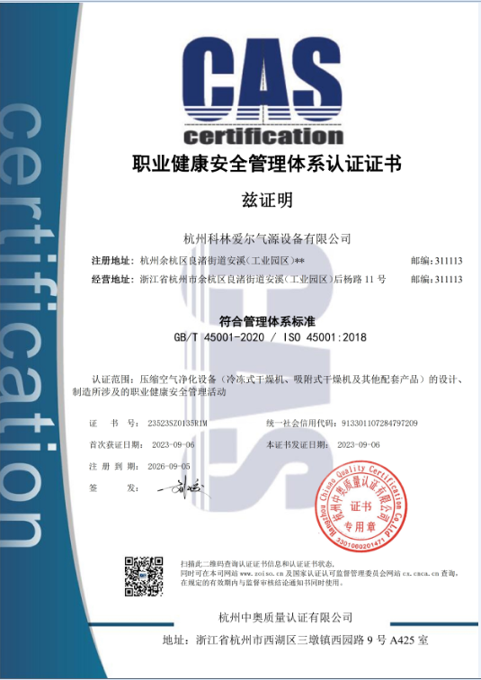 • 恭賀杭州科林愛爾氣源設備有限公司獲批浙江省“專精特新”中小企業(yè)認定 [2023/12/20]